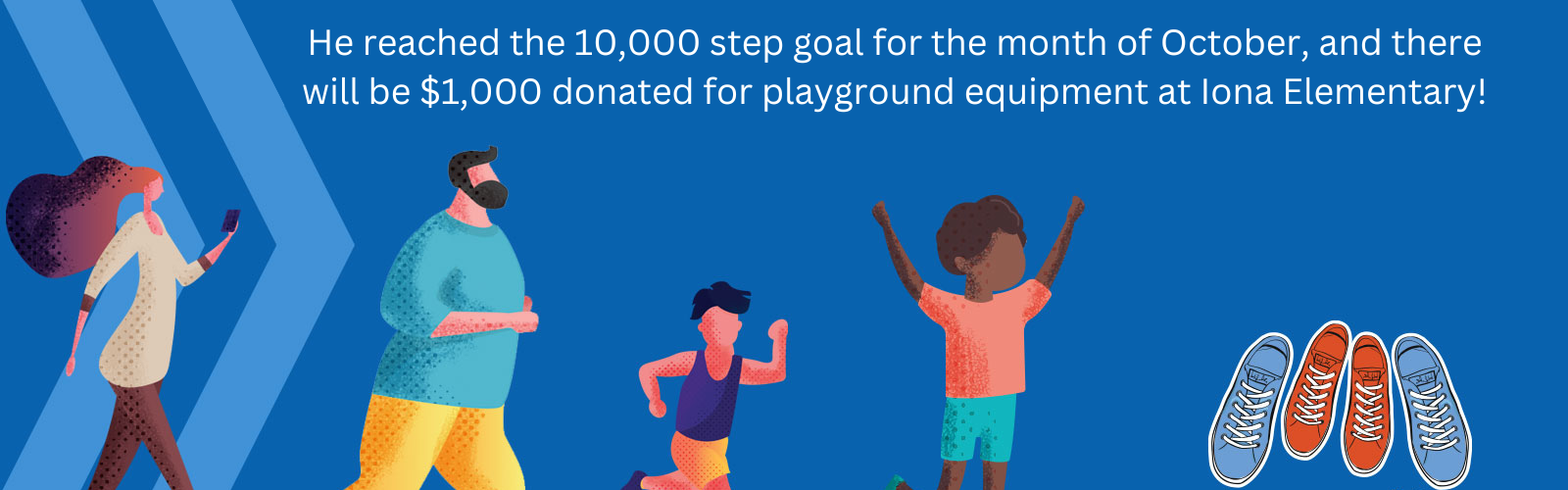 We are so grateful for the hard work and dedication of Councilman Evan Mann! Due to his hard work getting 10,000 steps each day during the month of October $1,000 will be donated to Iona Elementary for new playground equipment! Let him know how amazing he is in the comments!